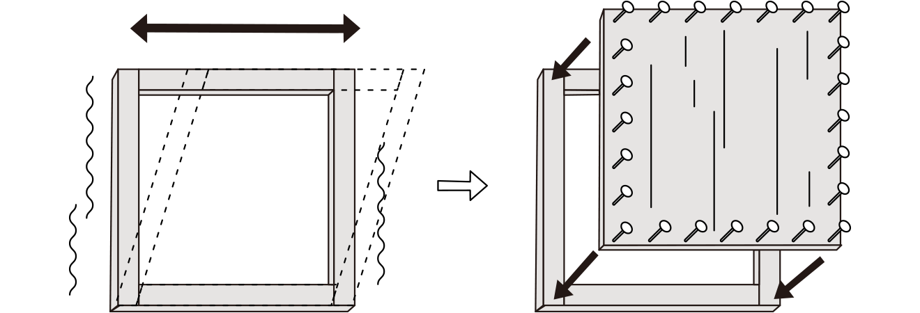 地震に強い住宅を作るため、壁に合板を貼りモノコック化して強化する方法が増えてきていました。しかし、合板を釘留めする一般的な方法では、合板のポテンシャルを十分に発揮させることができませんでした。