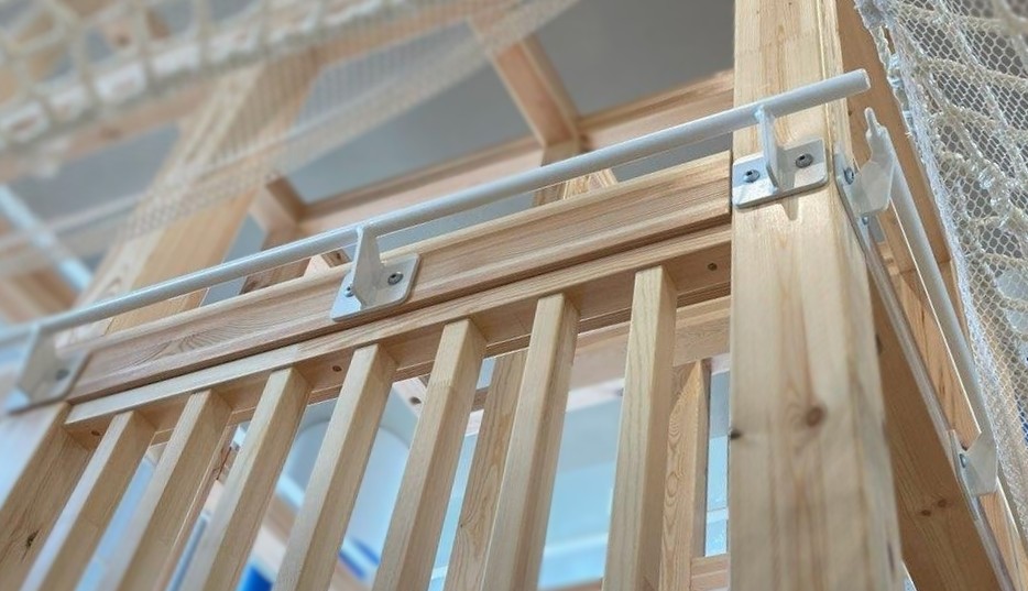 ⭐パネリード鋼は、構造を支える大きな用途から、身近な手摺や屋内遊具の金具留めにも活用できる、安全性と施工性に優れたビスです。