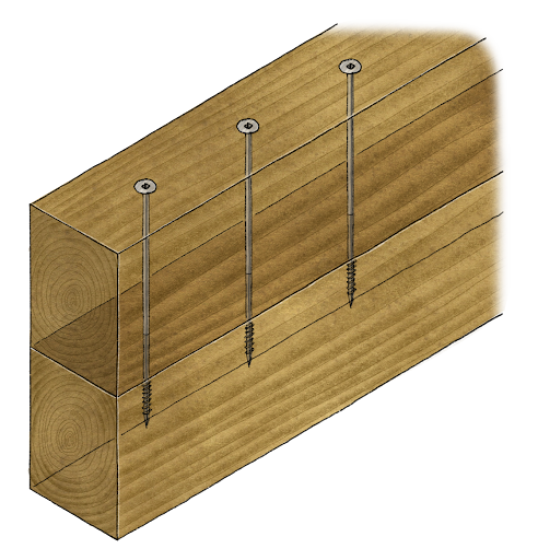 この製品は「半ねじ形状」のため、脅威の「引寄力」をもっており、新旧2本の木材を密着させることができるのです。