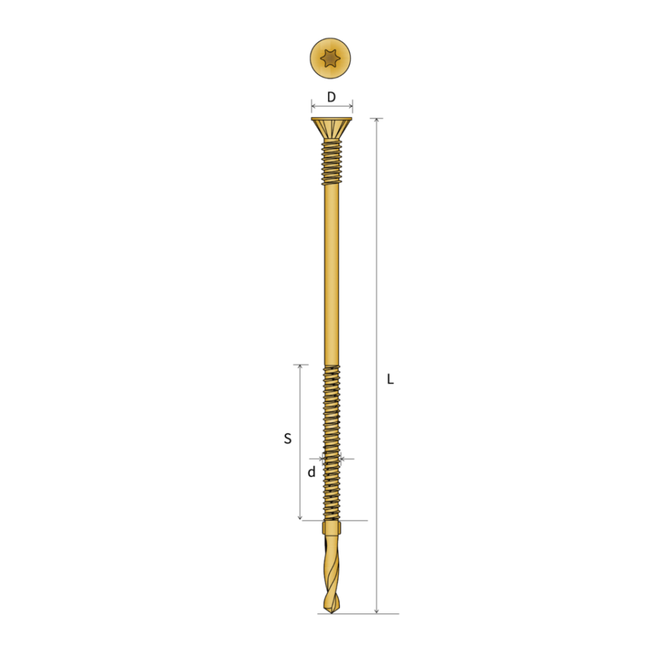 厚い鋼板に厚い木材を下穴なしで接合できる製品です。1工程で驚くほどスムーズに木材と鋼板を緊結します。