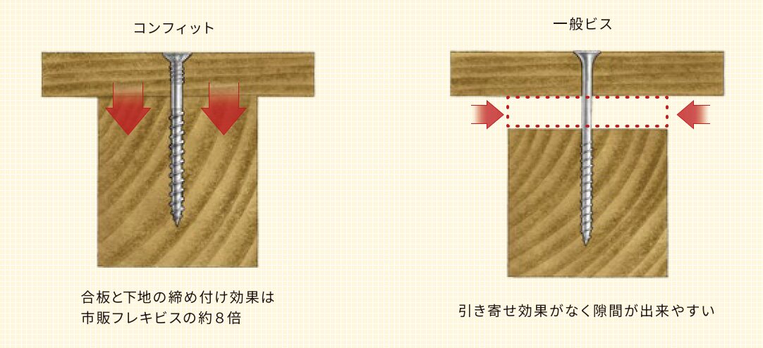 コンフィットは根太組工法の床下地合板用の床鳴り防止効果に優れた製品です。